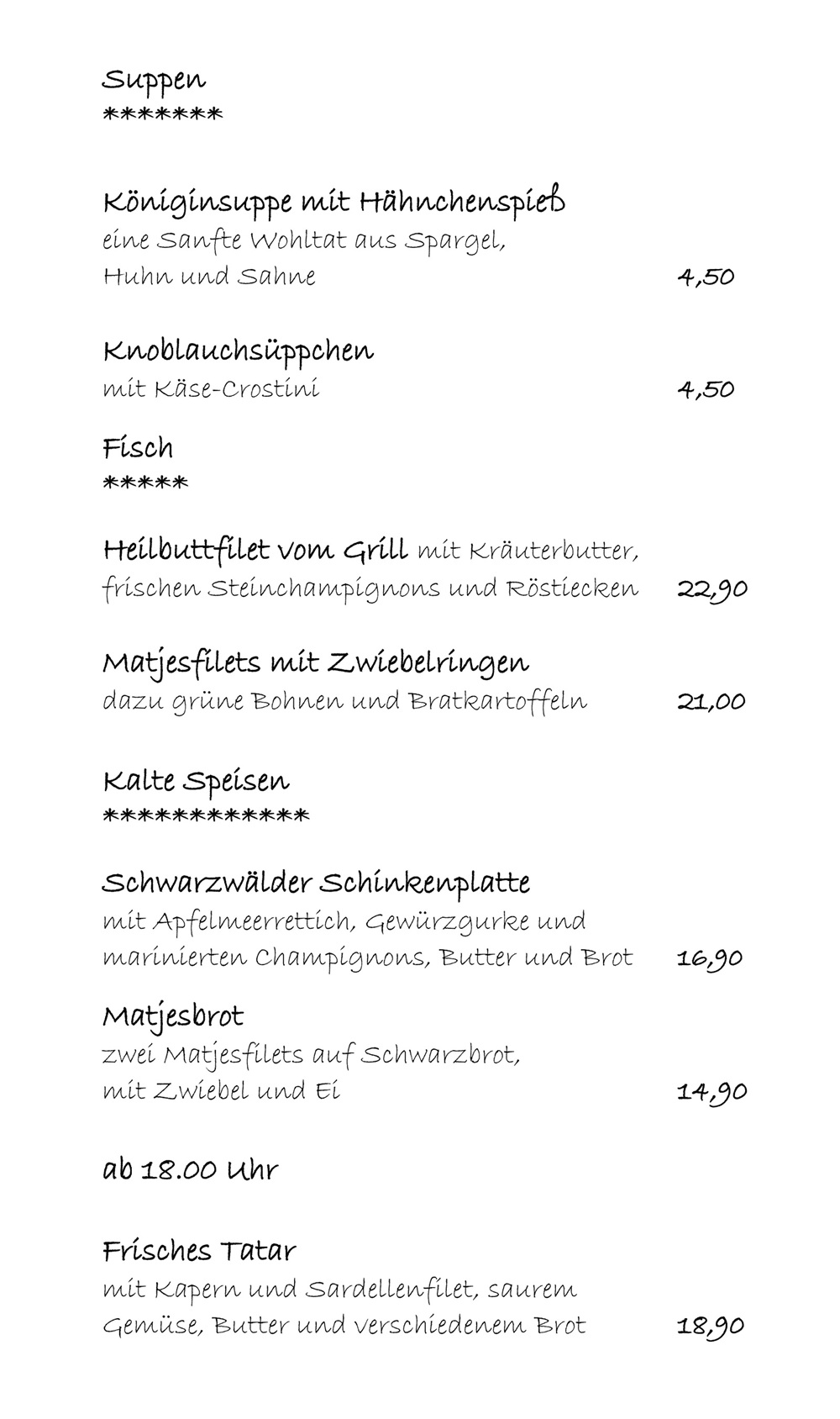 Unsere Speisekarten im Überblick